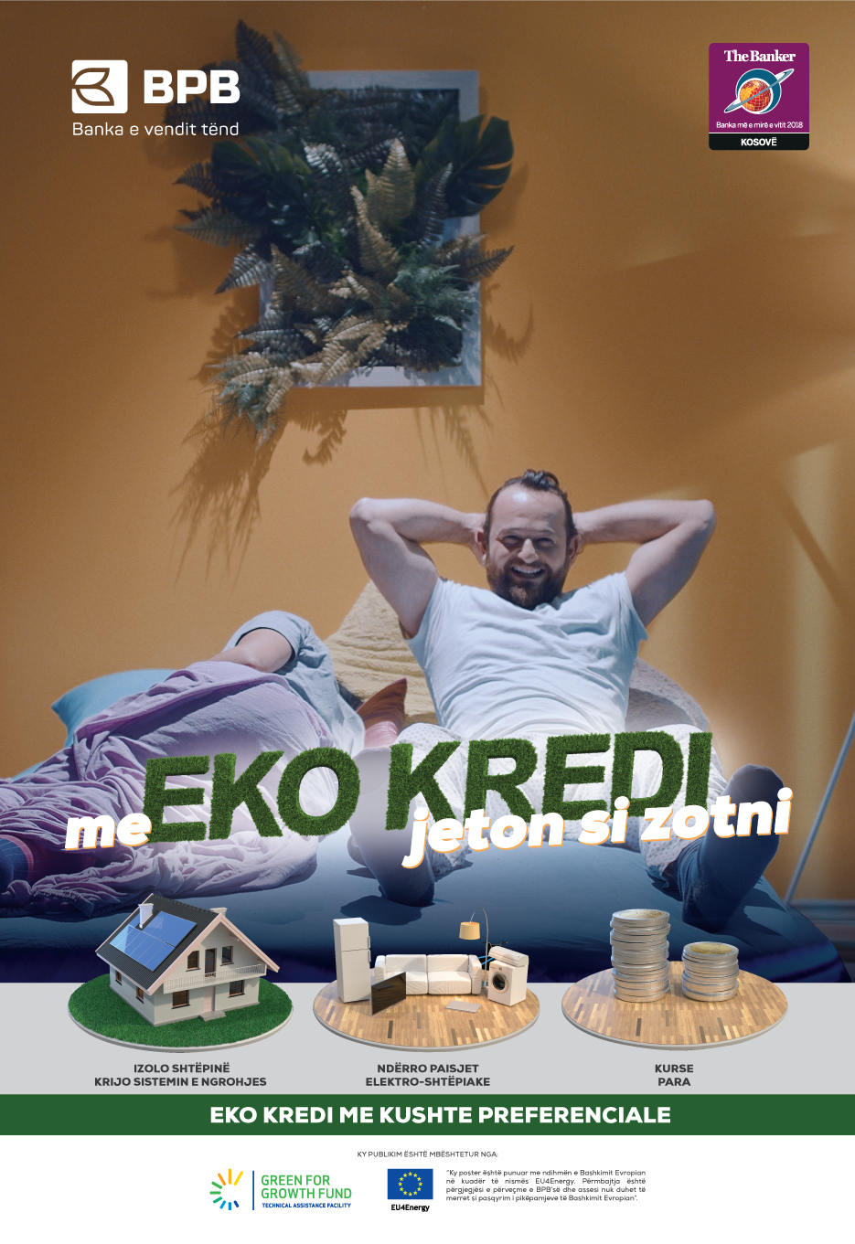 BPB në bashkëpunim me Green For Growth Fund (GGF) ka lansuar EKO kredinë. EKO kredia është e destinuar për investimet në izolimin e ambientit ku jetoni/punoni (në shtëpi ose biznes), blerjen e pajisjeve teknologjike moderne të cilat kursejnë energji, ndërrimin e dritareve, etj. Kjo kredi ofrohet me kushte preferenciale për klientët individual dhe ndërmarrjet e […]